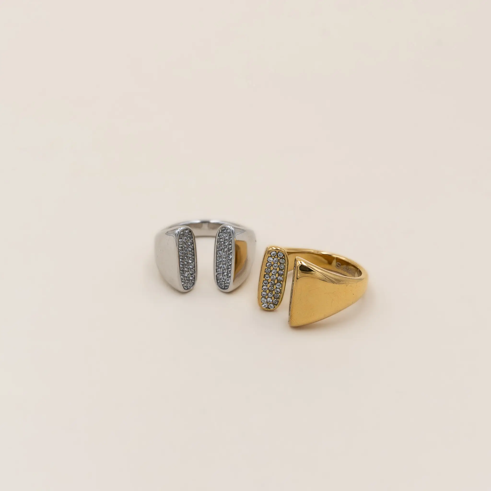 L’Anello Split fa parte della linea Anelli Acciaio Basic ed è pensato per chi ama i gioielli dal design moderno e ricercato. La forma aperta, caratterizzata da due elementi geometrici contrapposti — uno liscio e uno impreziosito da micro-cristalli — crea un contrasto elegante che cattura la luce e aggiunge personalità al look.