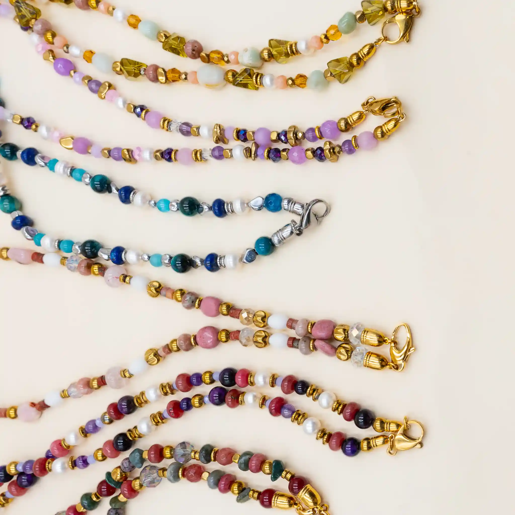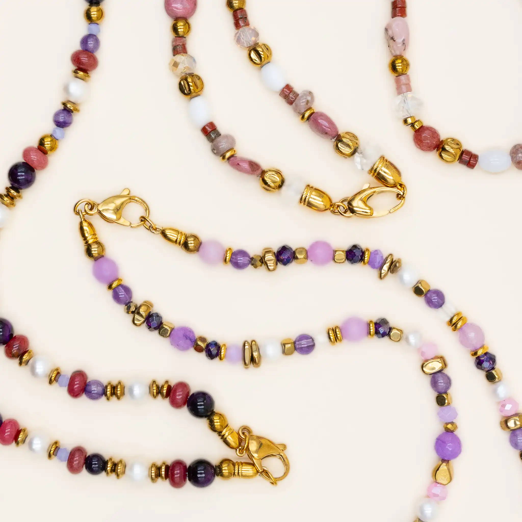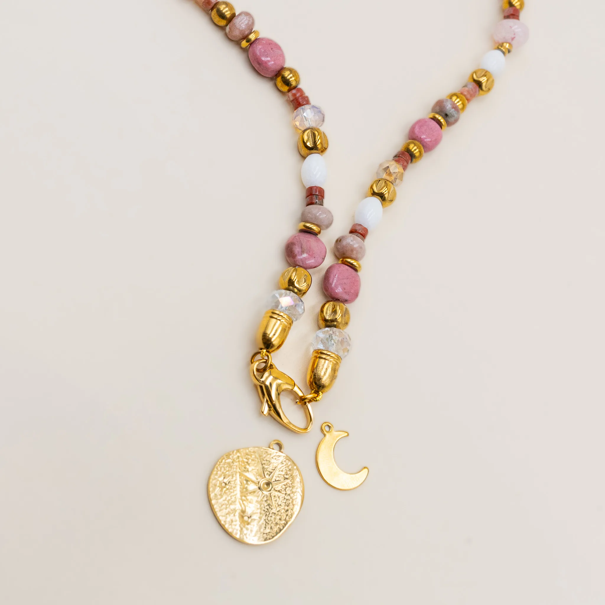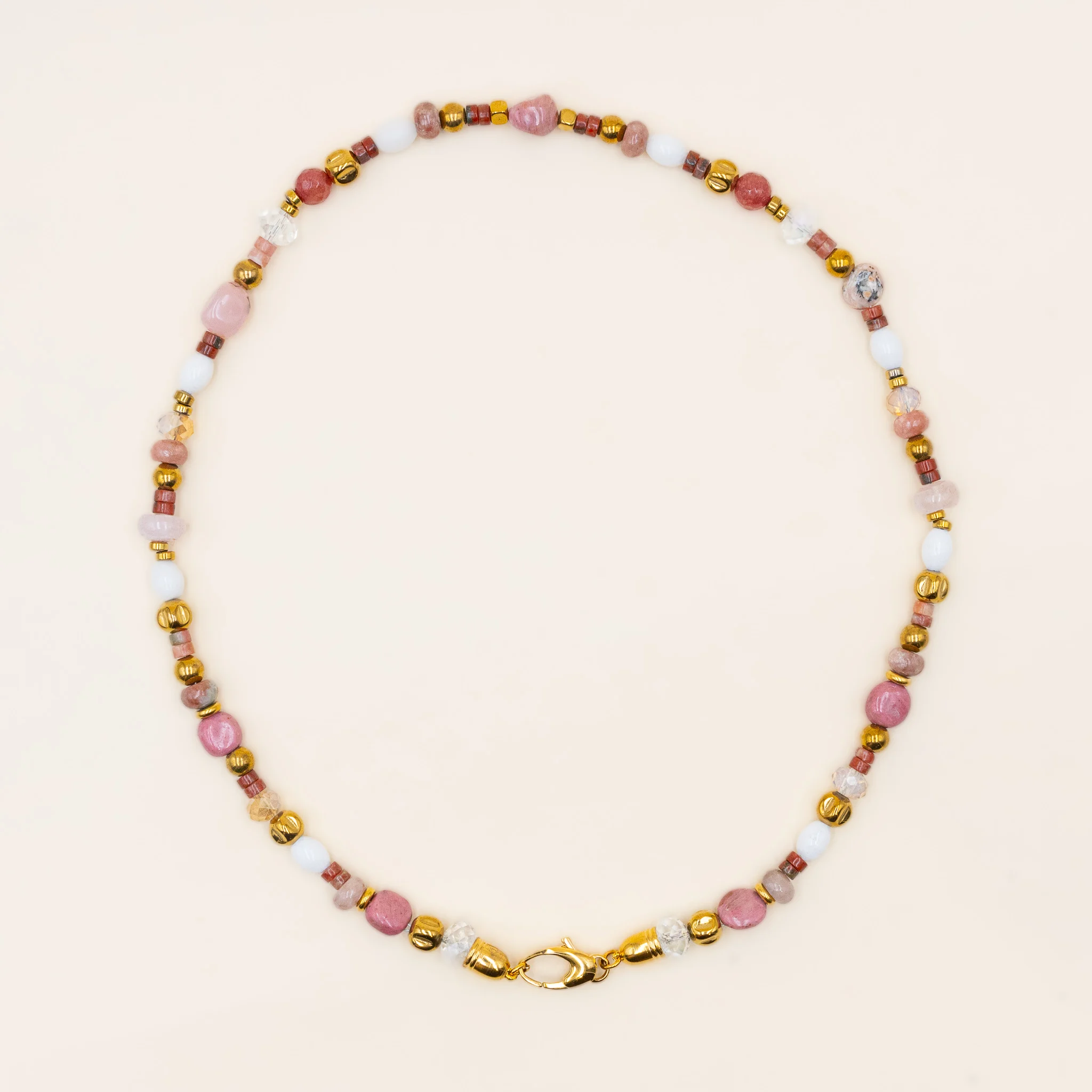 La Base Collana Crisalide – Autumn Bloom è un abbraccio di colori caldi e morbidi, ispirati all’autunno: rosa tenue, crema, ambra e piccoli riflessi dorati che ricordano foglie, tramonti e momenti di quiete. Realizzata in acciaio anallergico e arricchita da pietre naturali miste, porta con sé un’energia avvolgente, romantica e rassicurante.