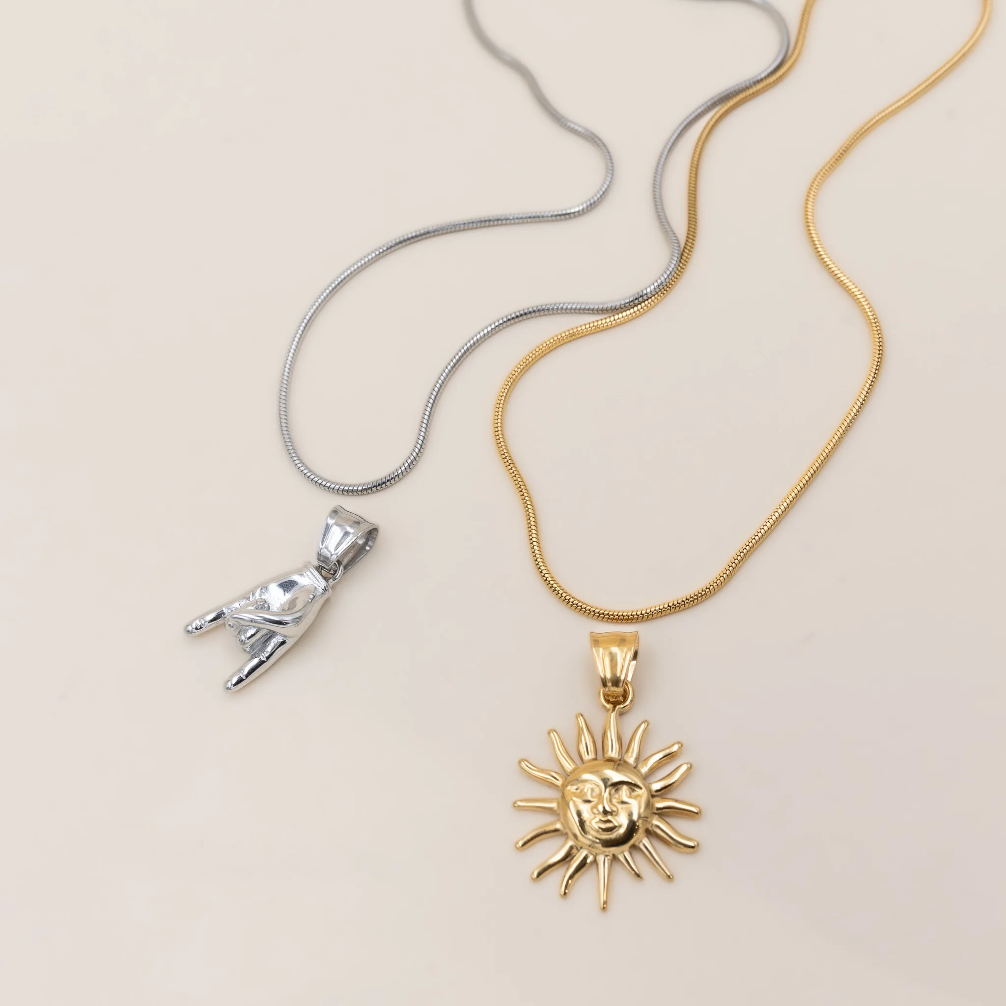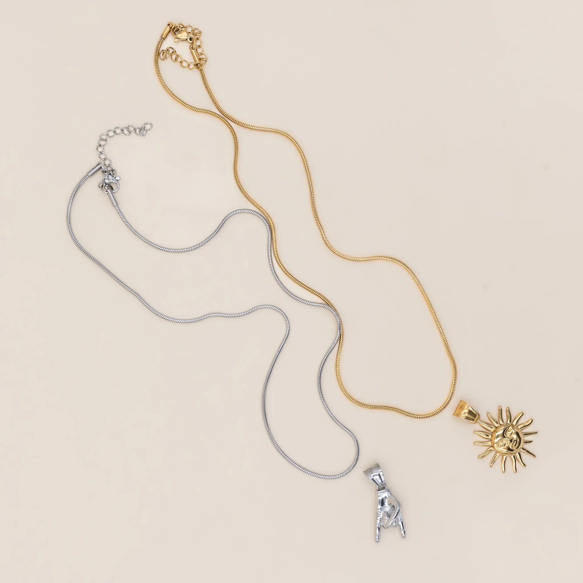 Realizzata in acciaio nelle finiture gold e silver, è luminosa e resistente, pensata per accompagnarti ogni giorno. La lunghezza di 45 cm, con allungamento di 5 cm, la rende versatile e perfetta da indossare sia da sola sia insieme ai ciondoli Crisalide, creando un amuleto personale che evolve con te.