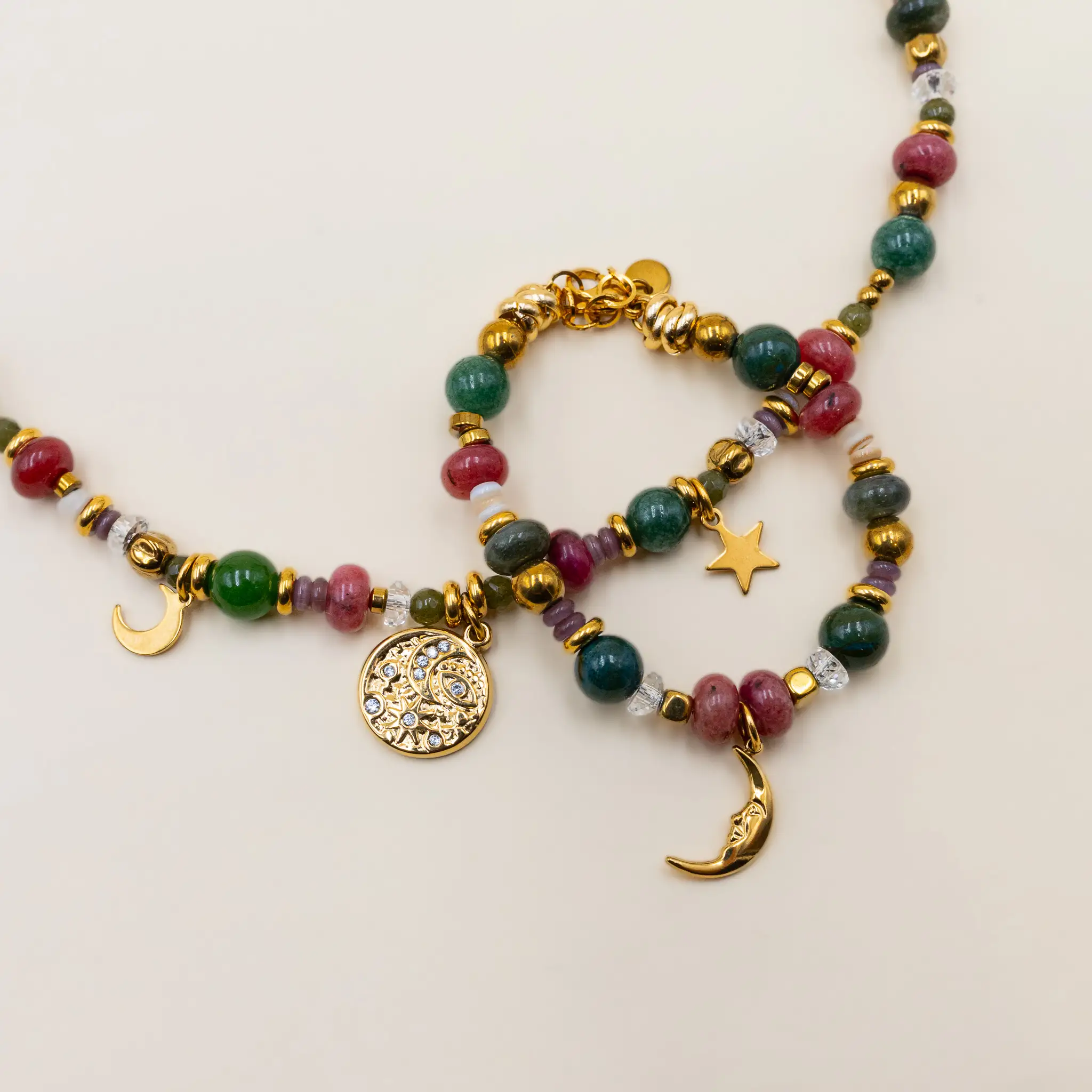 Un gioiello che cattura la magia del tramonto. Il Bracciale Brioso Sunset, realizzato con pietre naturali. Completa il design uno ciondolo. Un accessorio raffinato, perfetto per chi porta con sé la luce e l’energia di ogni fine giornata.