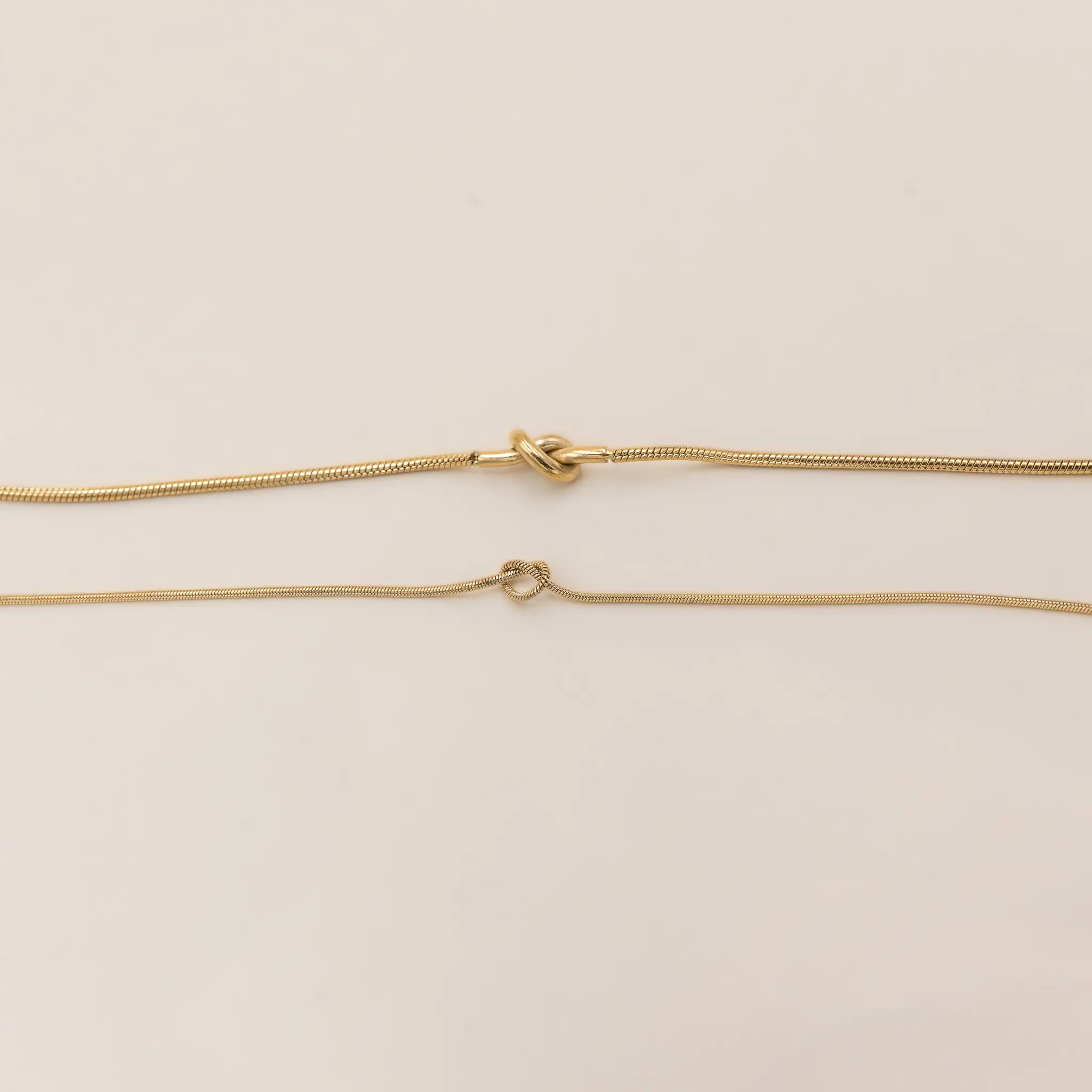 Il Bracciale Nodo Essenziale interpreta il simbolo del legame in una forma pulita, minimal e senza tempo. Il nodo centrale, piccolo ma ricco di significato, rappresenta connessione, promessa e presenza costante. La catena snake ultra-sottile dona un profilo elegante che si appoggia al polso come un gesto delicato, perfetto da indossare ogni giorno.