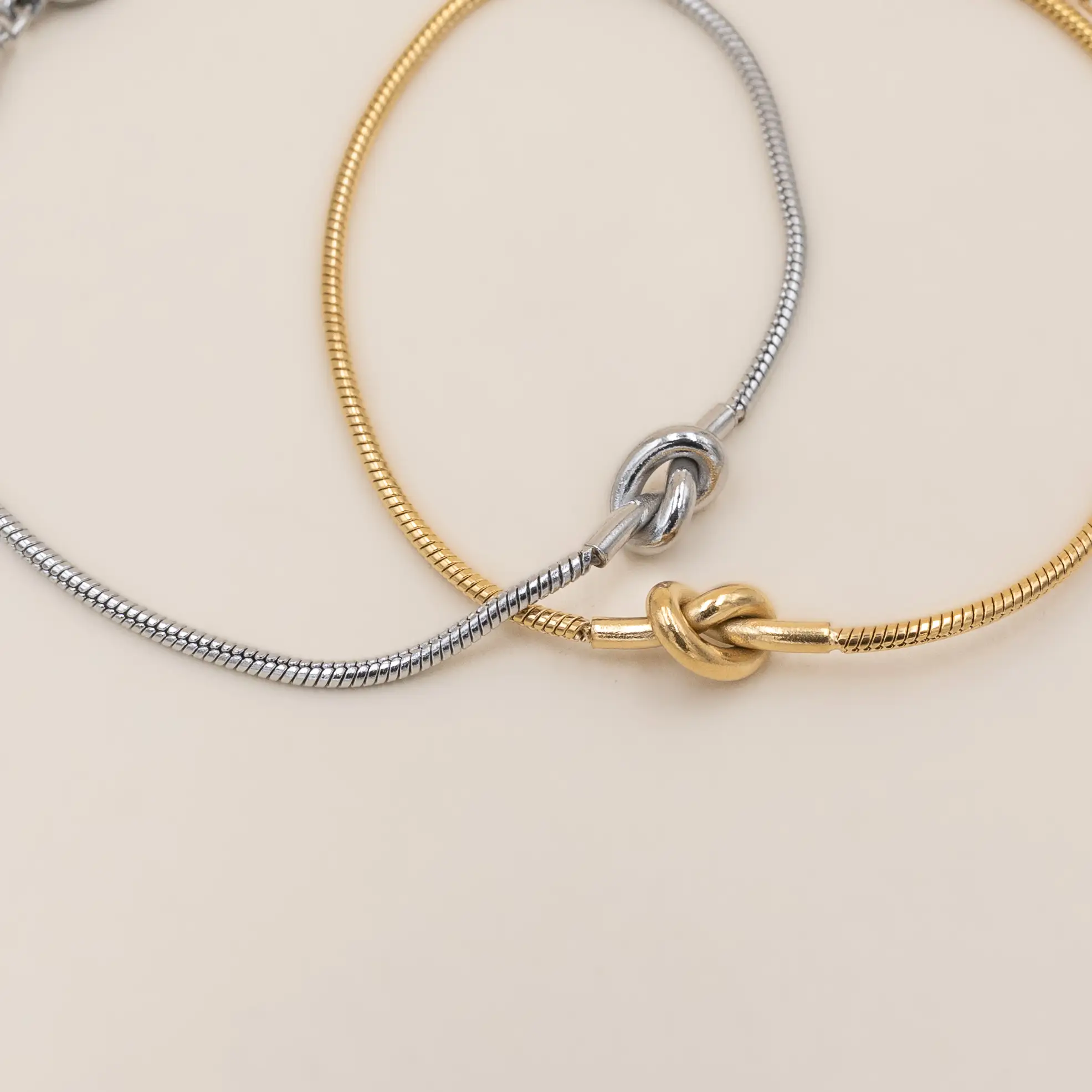 Il Bracciale Nodo Sottile è il modello più minimalista della Collezione Nodo: un dettaglio fine, elegante e intriso di significato. La catena snake, lucida e flessibile, abbraccia un piccolo nodo centrale, simbolo di legami, promesse e connessioni che scegliamo di portare con noi ogni giorno. Perfetto per chi ama gioielli discreti ma ricchi di anima, da indossare da soli o insieme ad altri bracciali per creare un layering delicato.