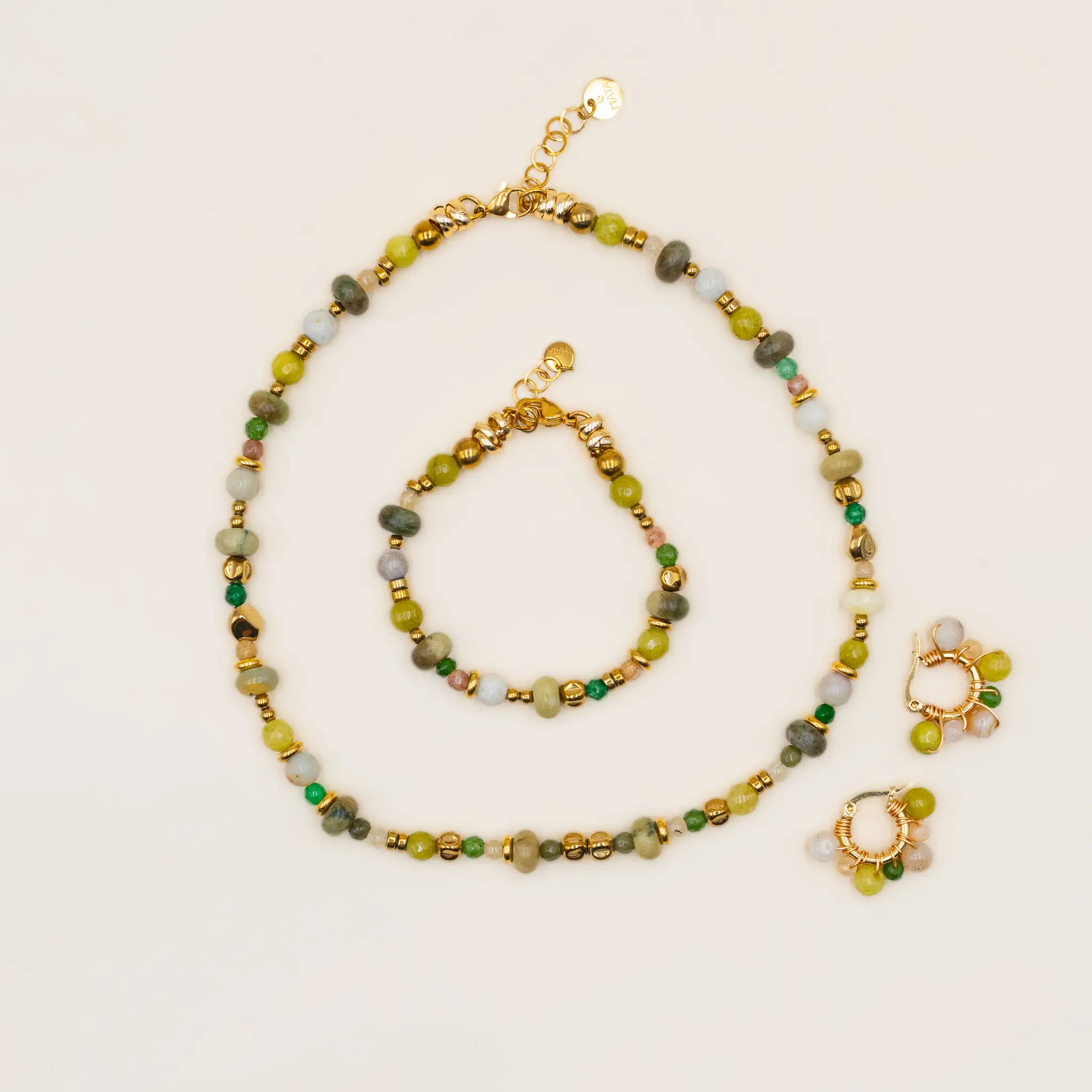La Collana Briosa Puglia, disponibile nella finitura color oro in acciaio, è arricchita da pietre naturali nei toni della terra e del mare, evocando il verde degli ulivi, l’azzurro del Mediterraneo e le sfumature calde dei tramonti estivi. Un accessorio che racconta la bellezza autentica e solare di una terra ricca di storia, luce e armonia.