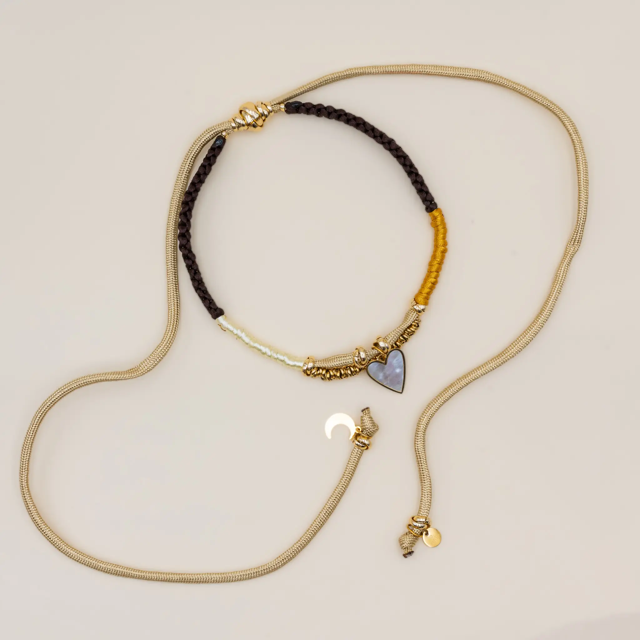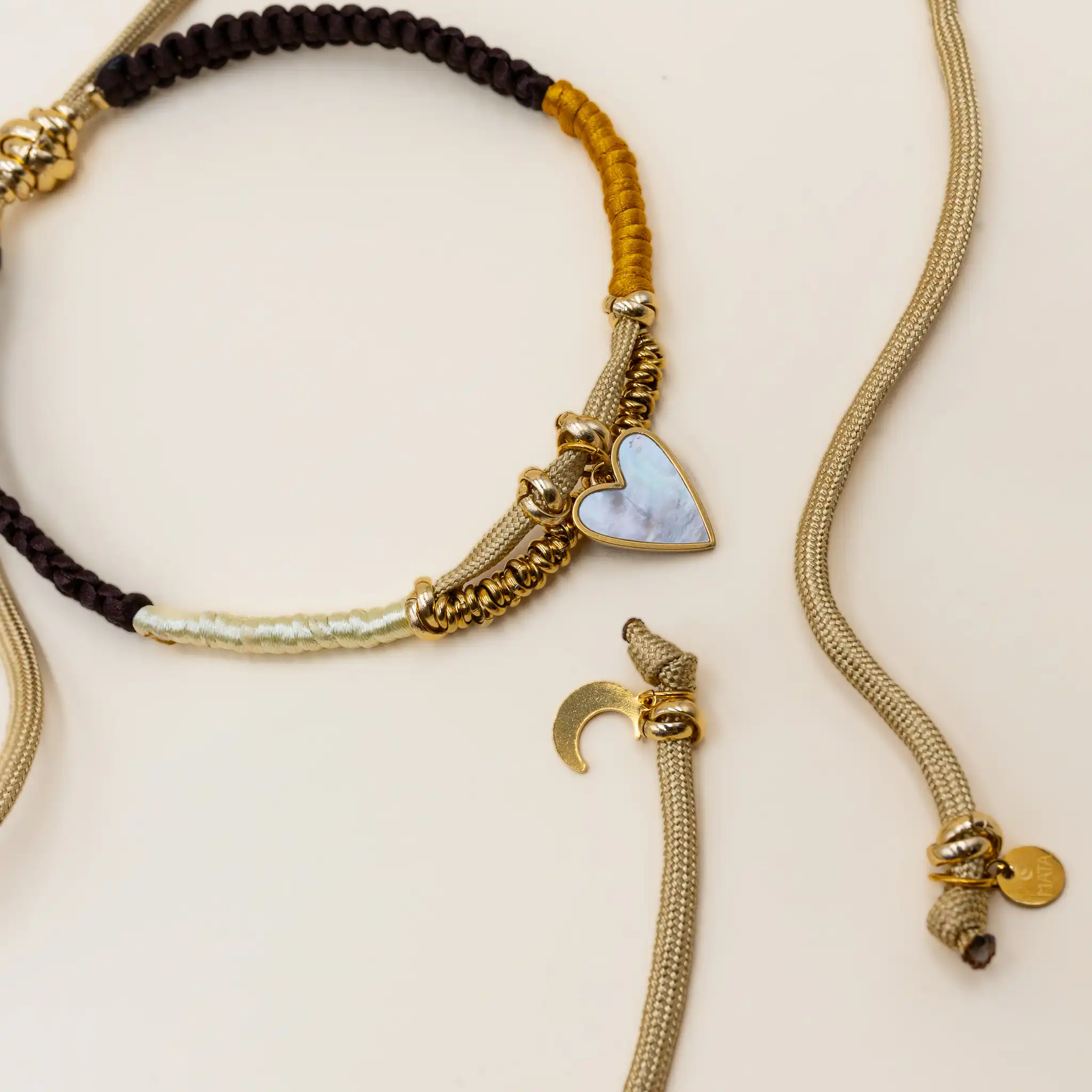 Grazie al nodo a scorrimento, la Monoi Maia si adatta perfettamente a ogni stile e a ogni momento della giornata. Puoi renderla ancora più speciale aggiungendo 1 ciondolo simbolico a scelta, trasformandola in un piccolo talismano personale.