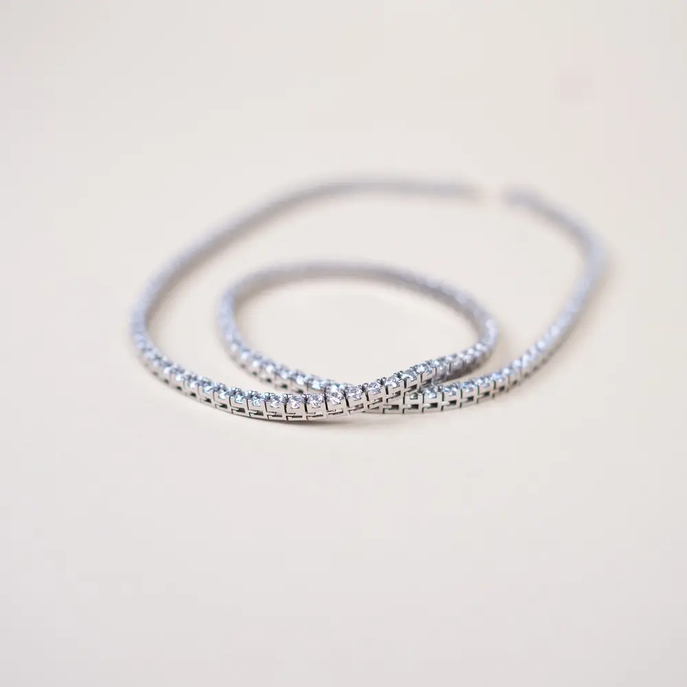 Un’icona di eleganza senza tempo, ora personalizzabile nei dettagli e nei colori. La Collana Tennis, realizzata in argento 925, è disponibile nelle finiture oro, oro rosa e argento ed è impreziosita da zirconi scintillanti. La chiusura a incastro può essere incisa (max 6 caratteri), per rendere il tuo gioiello davvero unico.