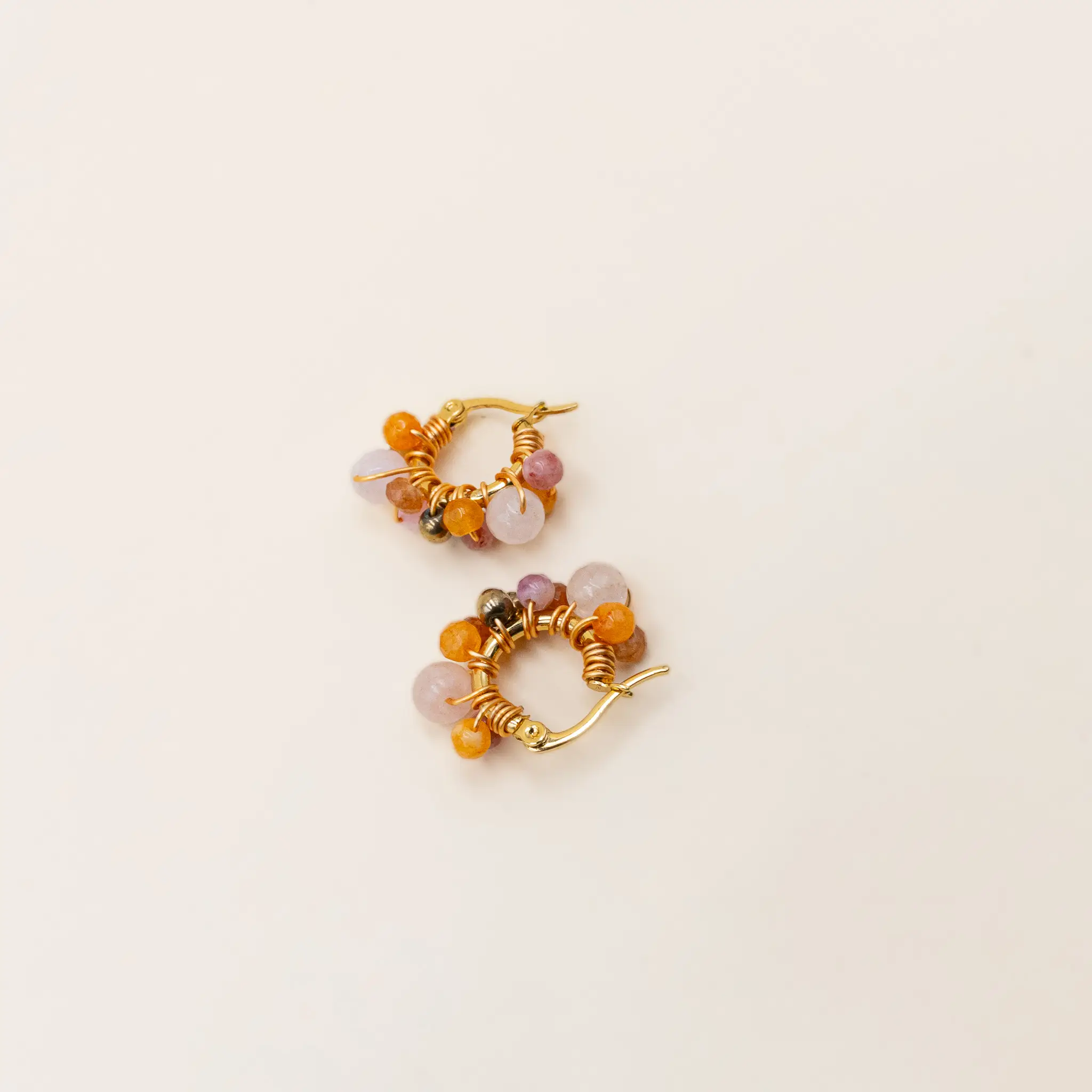 Gli Orecchini Briosi Sea catturano l’energia vivace dell’estate e la leggerezza delle giornate al mare. I cristalli nei toni dell’arancio, del lilla e del giallo ricordano i colori delle conchiglie illuminate dal sole e le sfumature cangianti dell’acqua al tramonto.
