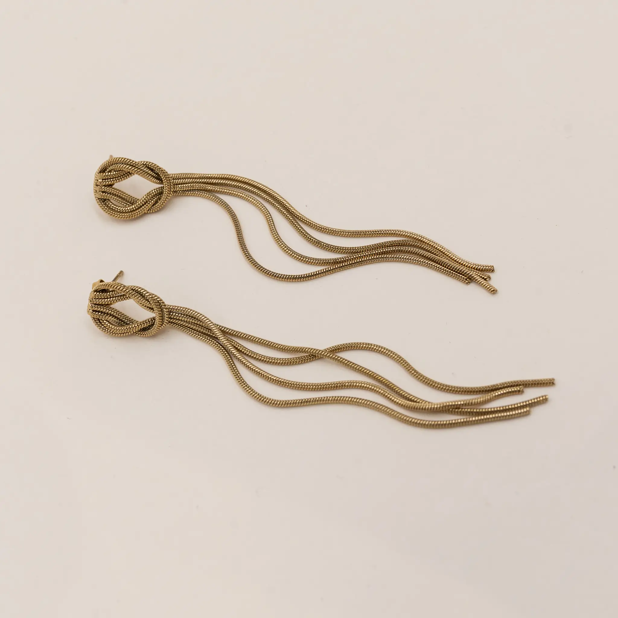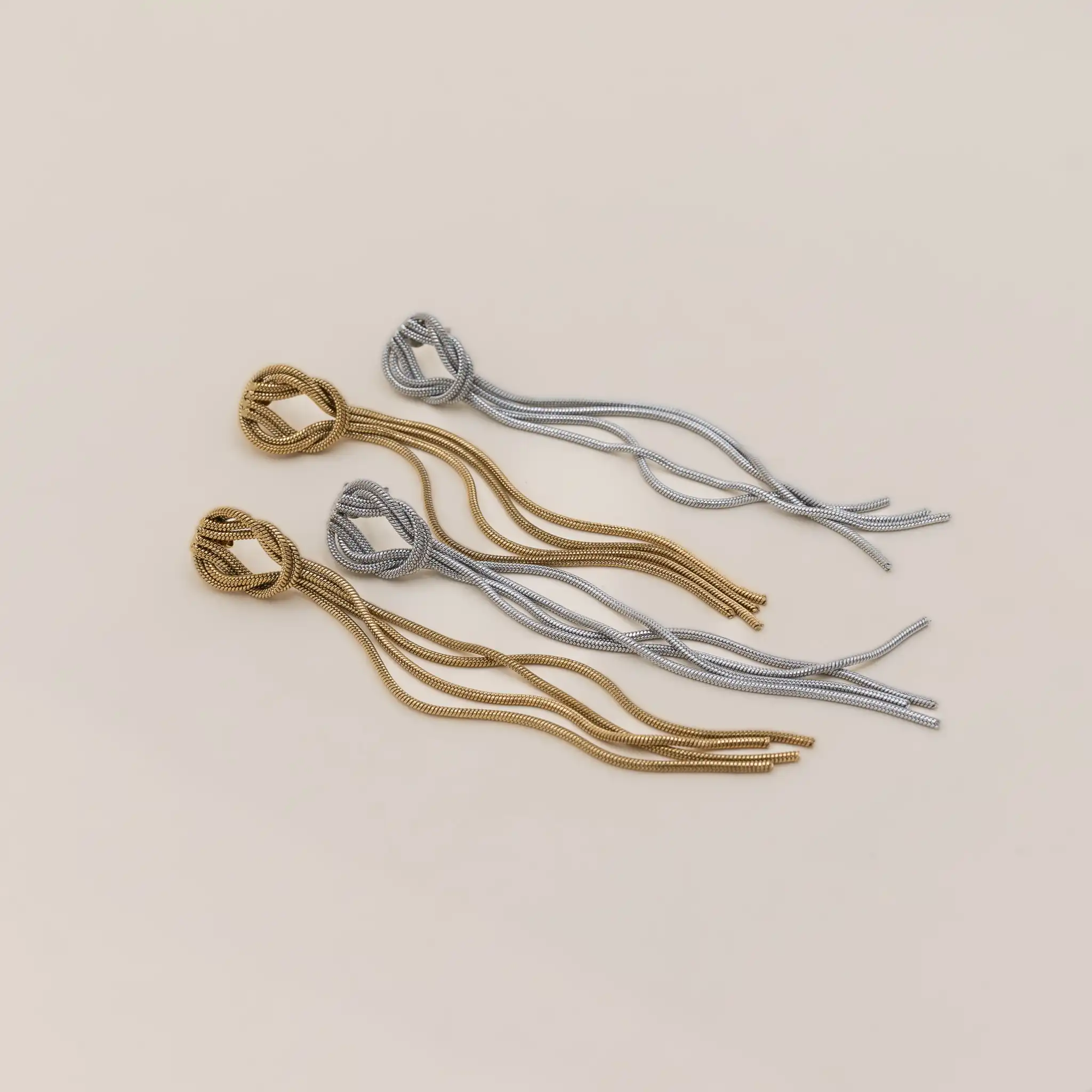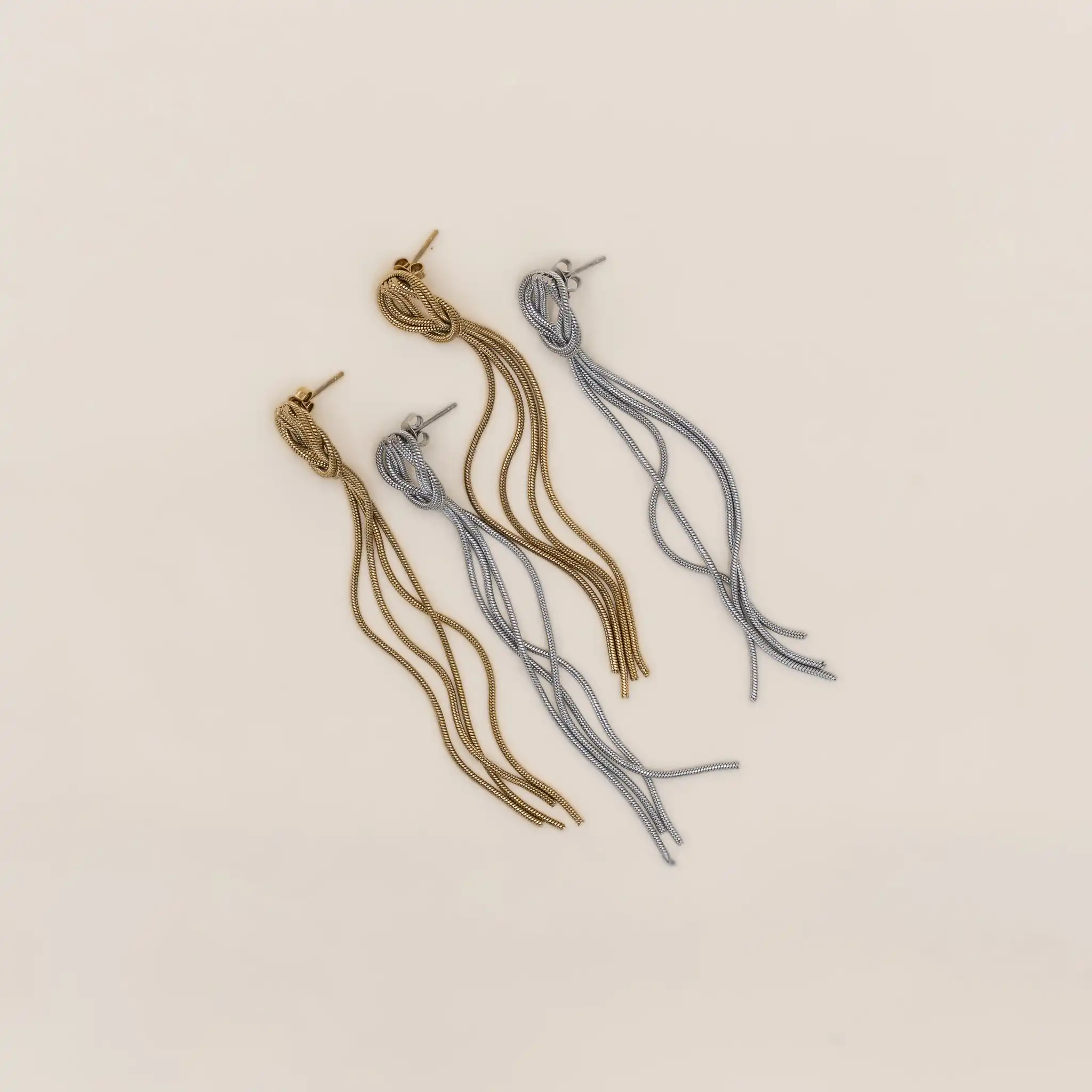 Gli Orecchini Nodo sono un gioiello scenografico e leggero, caratterizzato da un intreccio elegante nella parte superiore e da morbide catene snake che creano un movimento fluido ad ogni passo. Realizzati in acciaio con finitura Gold o Silver, sono perfetti per chi ama un look sofisticato e moderno, capace di valorizzare qualsiasi outfit serale o quotidiano.