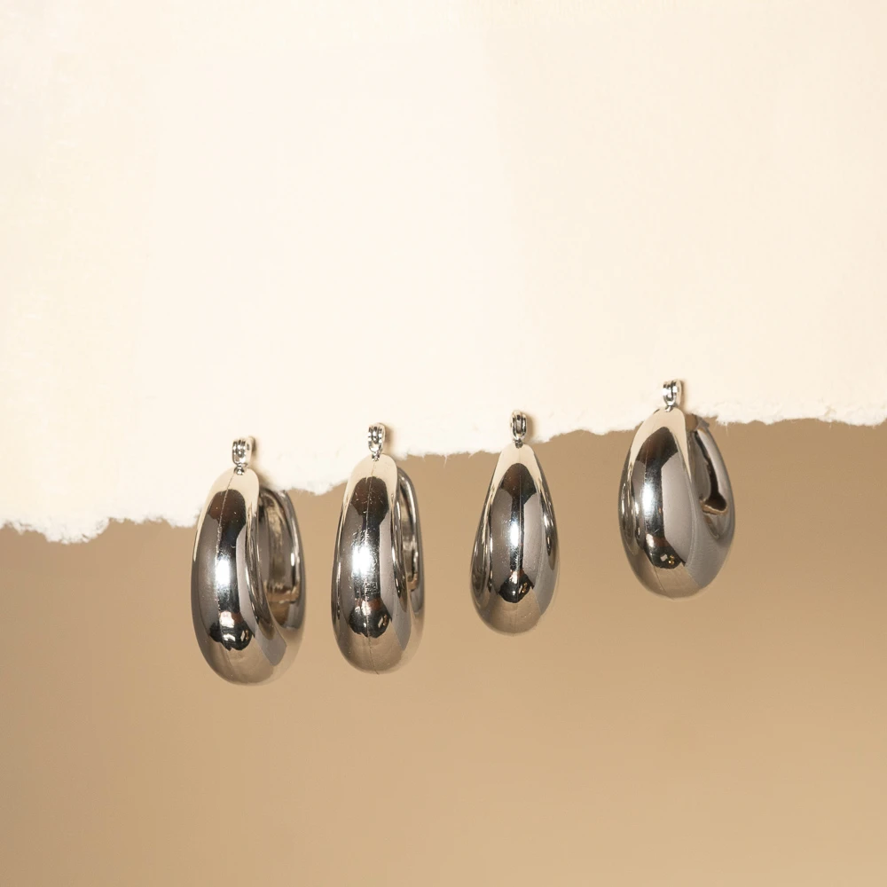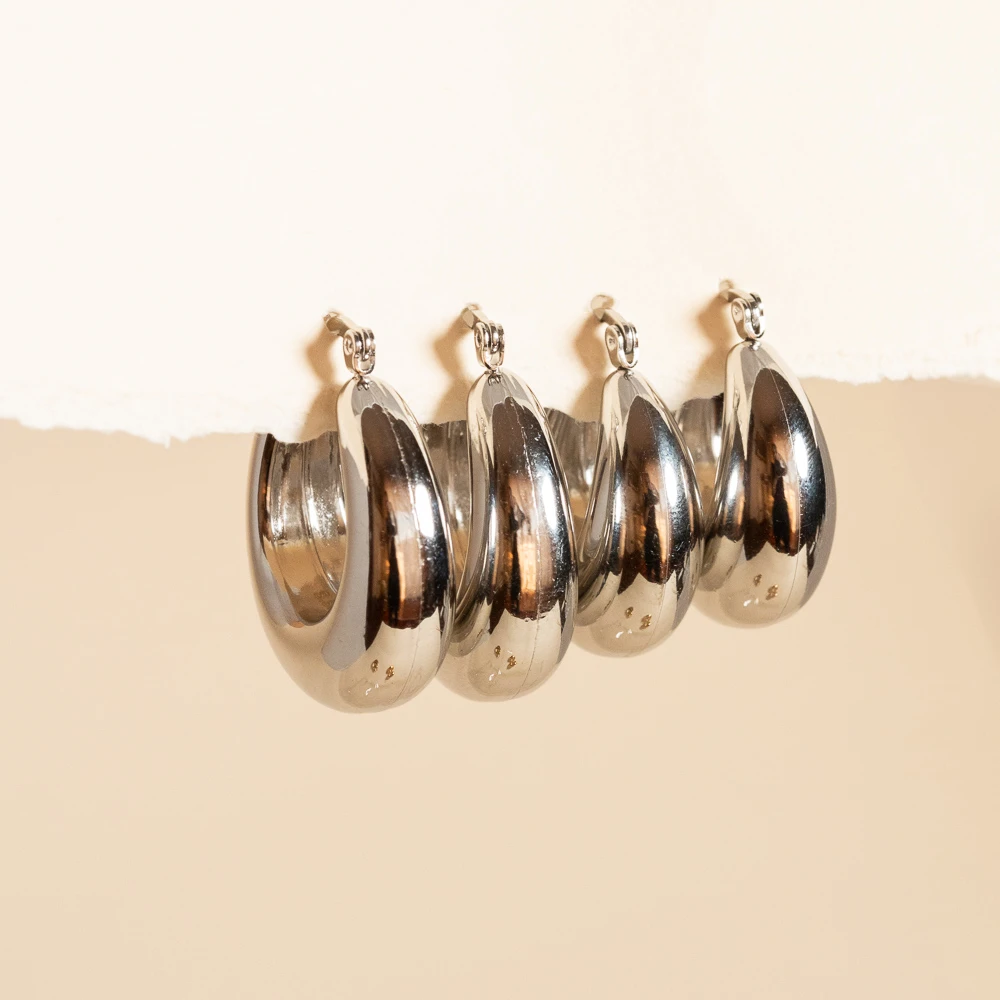 Realizzati in acciaio anallergico, hanno una forma ovale più spessa del classico cerchietto, per dare carattere anche ai look più minimal. La chiusura a incastro garantisce stabilità e comfort.