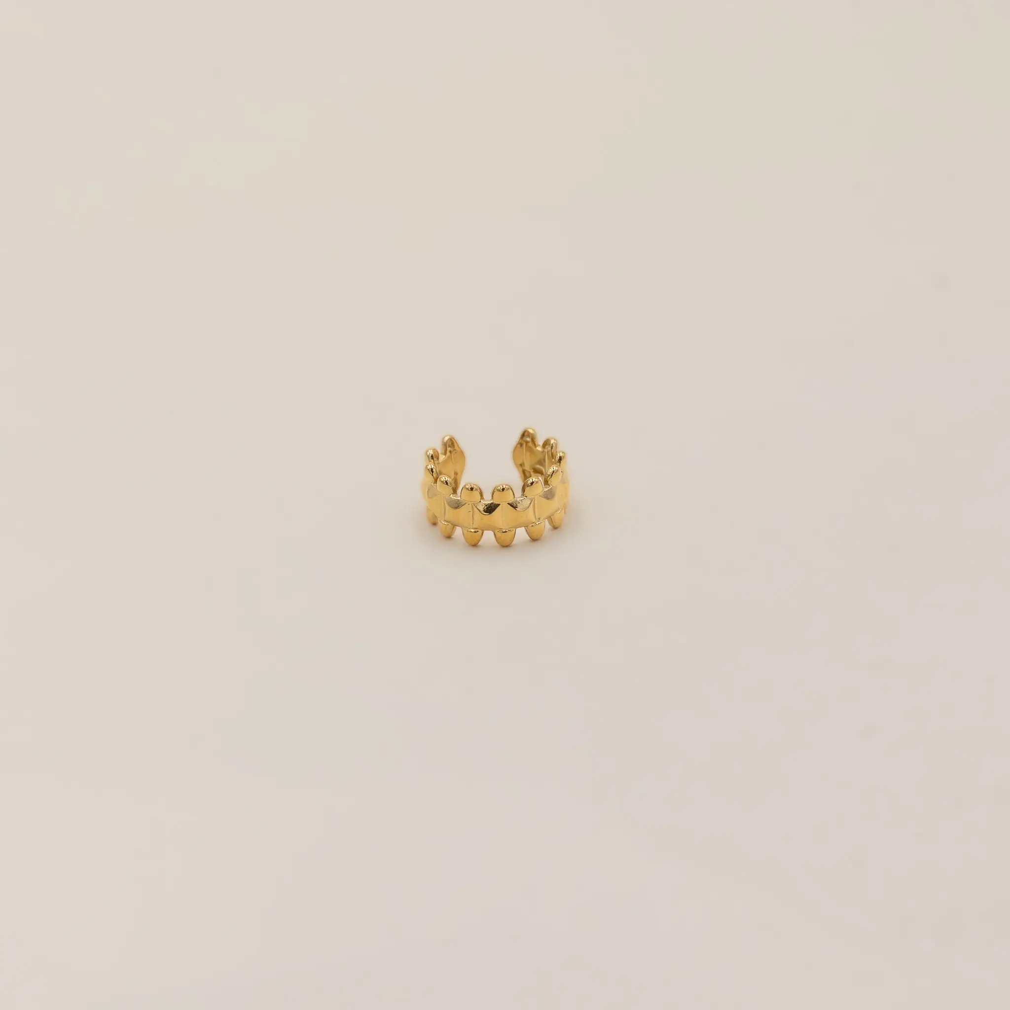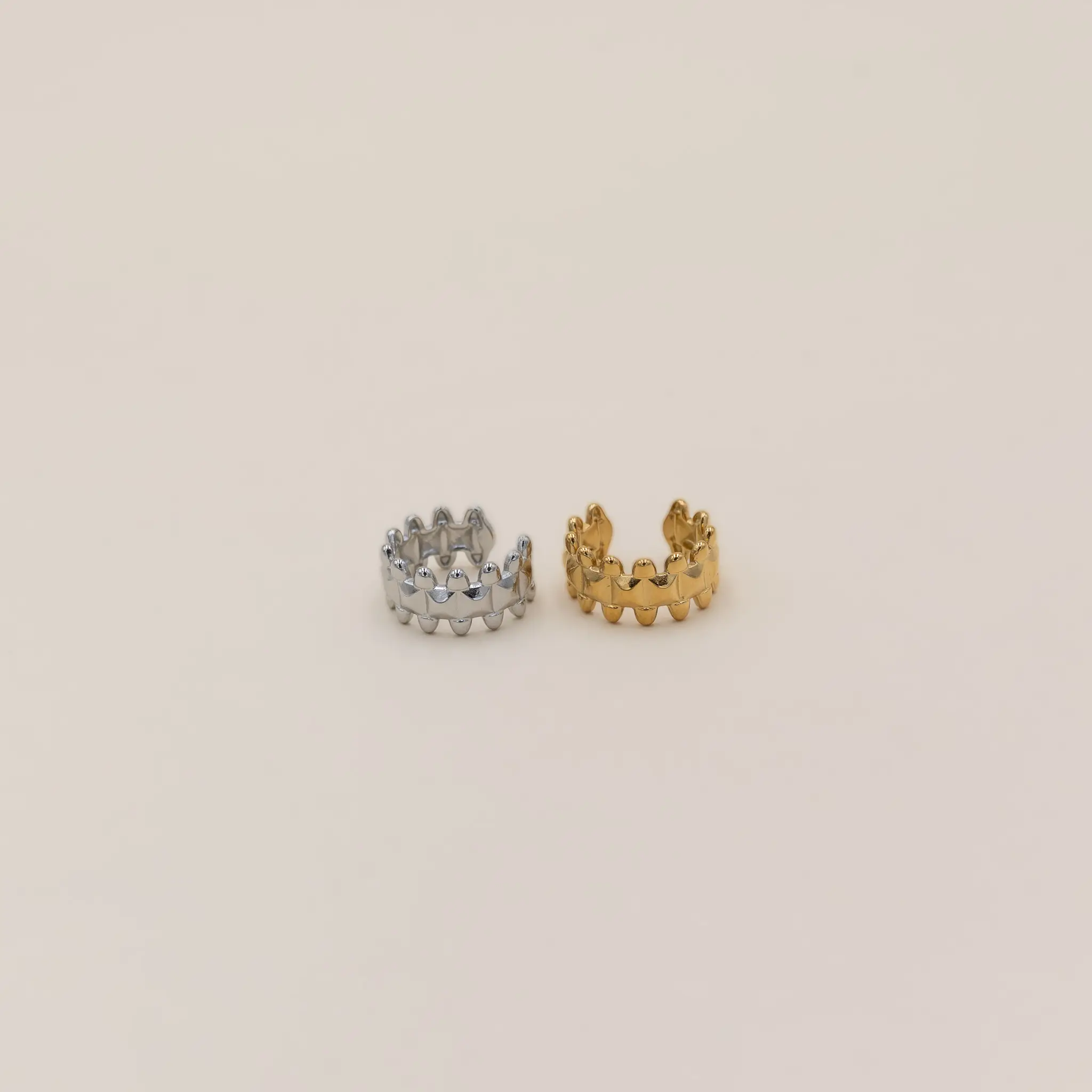 L’Ear Cuff Crown è un orecchino senza foro in acciaio pensato per chi ama dettagli originali e luminosi senza impegnarsi con la perforazione. Il suo design a piccole punte arrotondate ricrea una mini-corona moderna, delicata ma con carattere, perfetta da indossare da sola o abbinata ad altri ear cuff.
